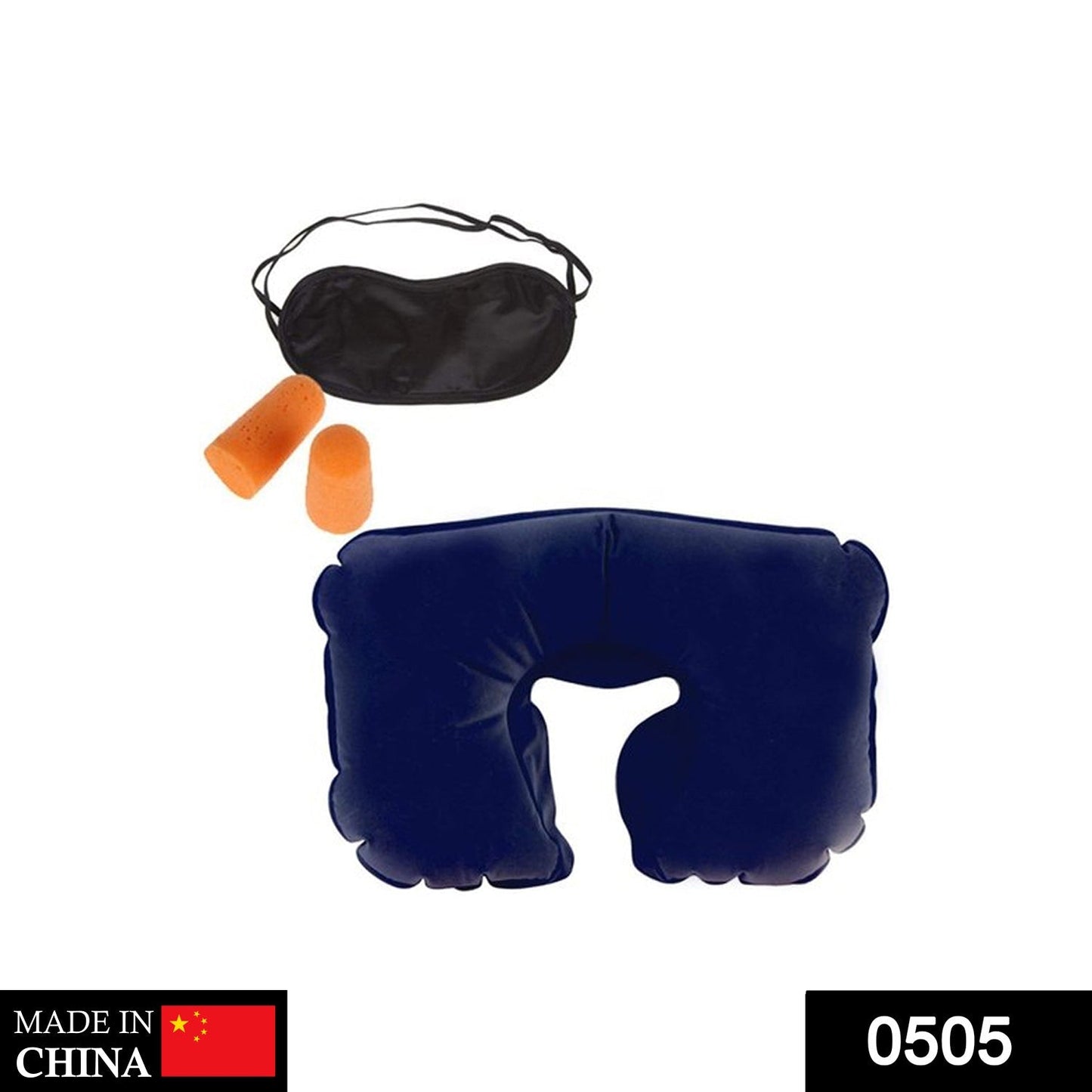 Admirer zone 3 in 1 air travel kit combo - pillow, ear buds and eye mask ( inflatable neck cushion - flannelette, ear buds - cotton foam, eye mask - polyester).