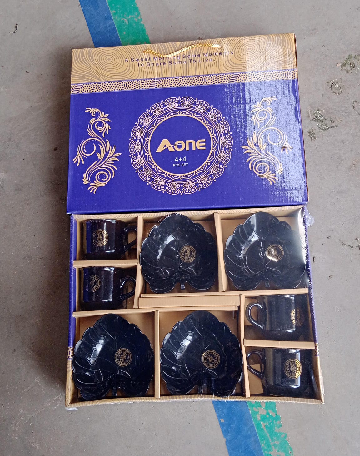 A One Ceramic Tea / cups / Mug Set With Leaf Shape Serving Bowl (8 Pcs set)
